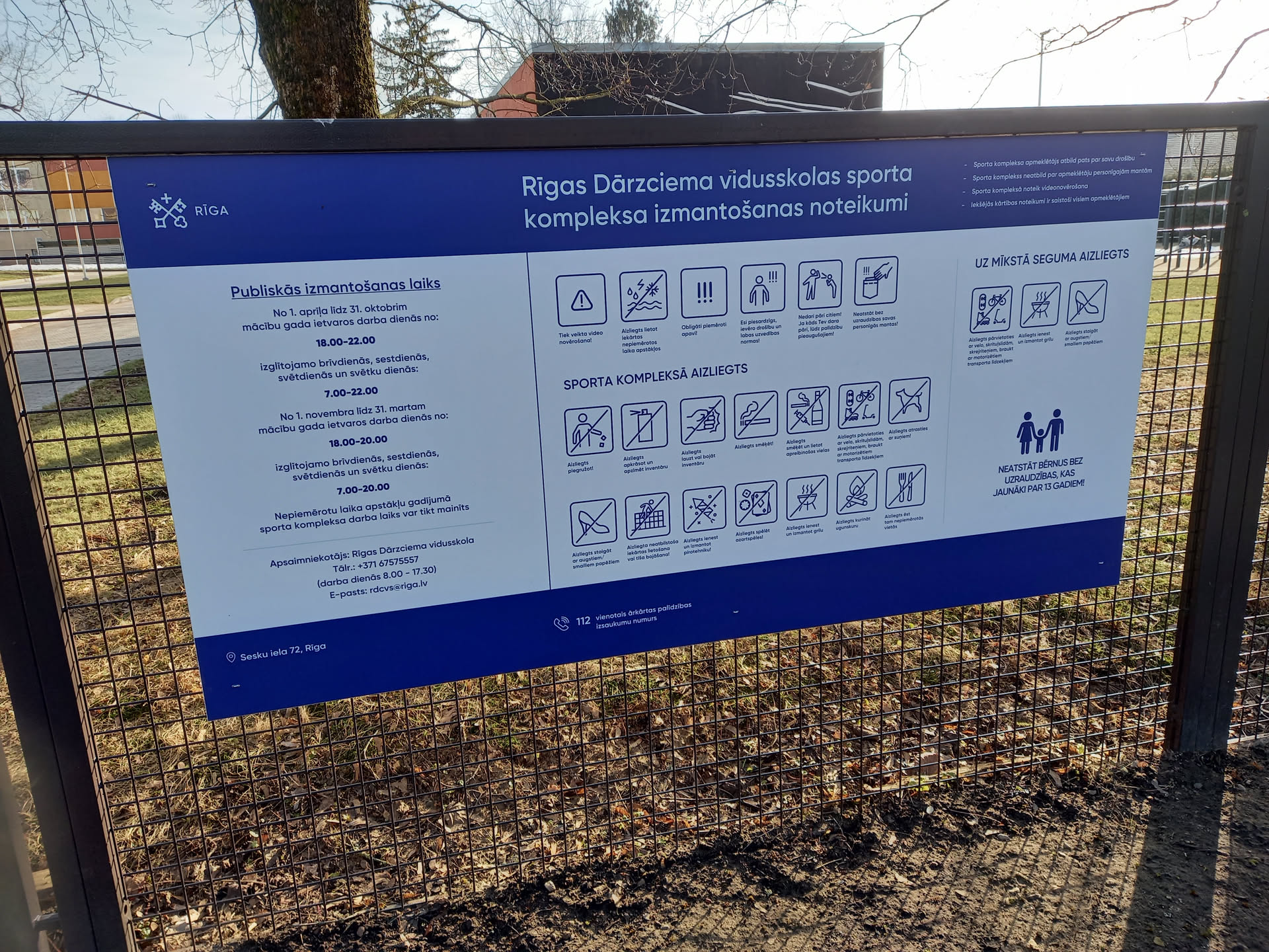 This makes sense, but taking Dārzciema vidusskolu as an example: they have infoboards with working hours at both entrances from Sesku.